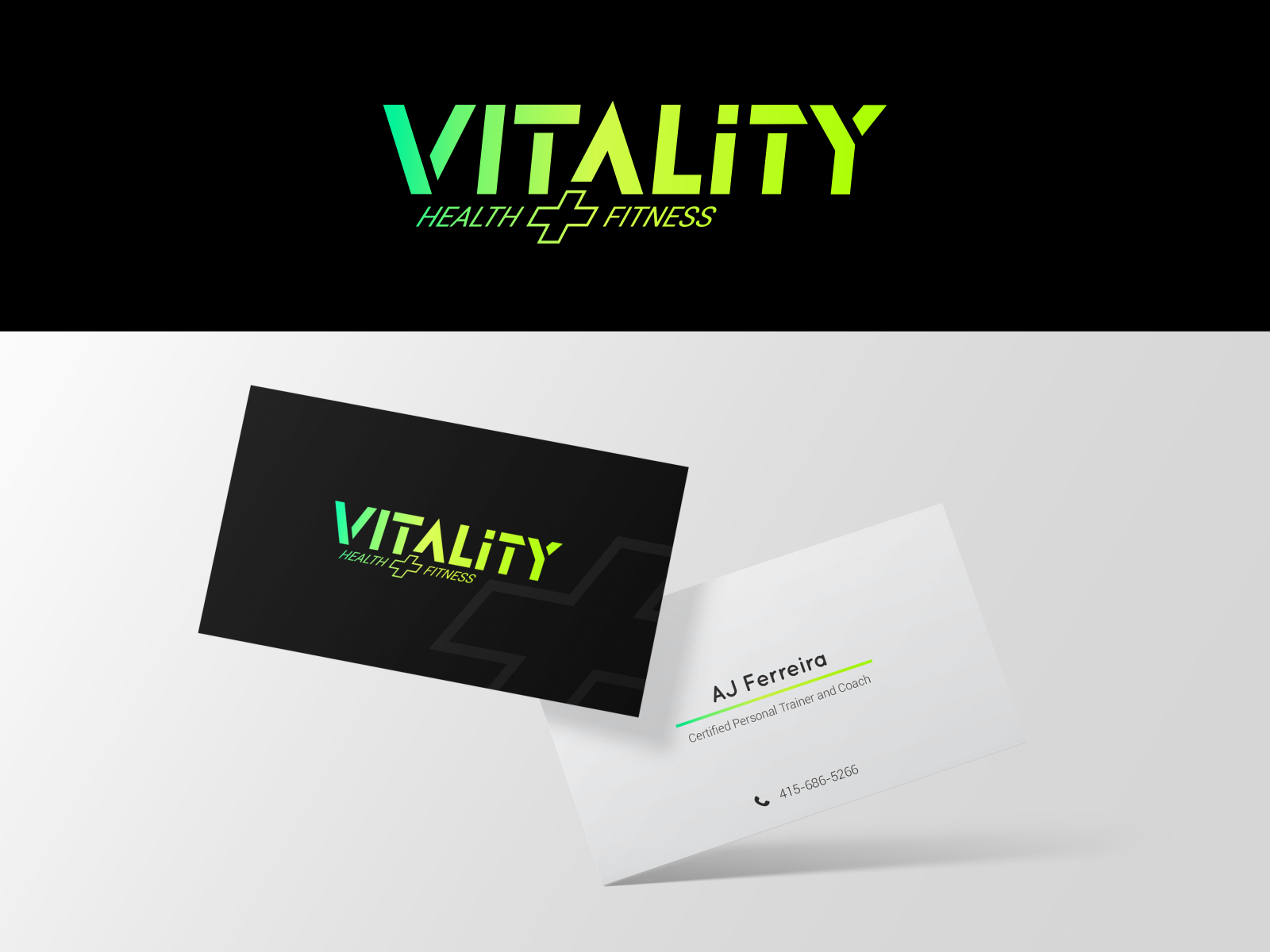 Business card designed for Vitality Health + Fitness.